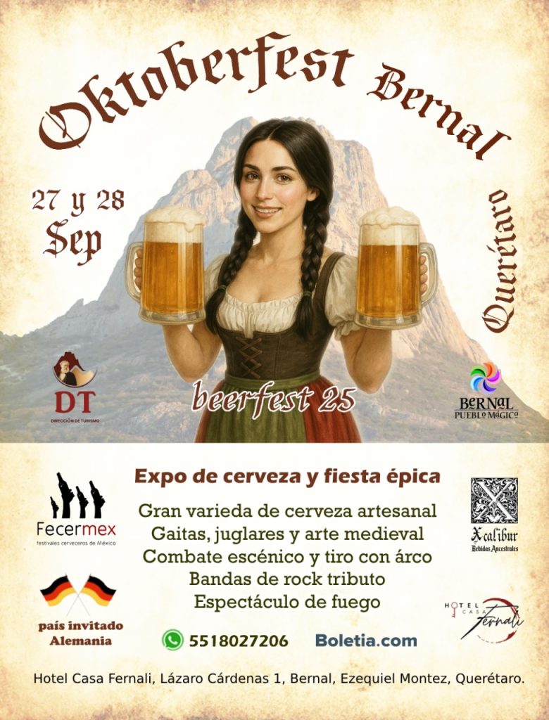 Ciudad de México, 04 de agosto, 2025-Disfruta de la experiencia sensorial que ofrece la cerveza artesanal, mientras saboreas una rica parrillada y contemplas la majestuosa Peña de Bernal, todo esto en el Oktoberfest Bernal que se llevará a cabo 27 y 28 de septiembre en el Hotel Casa Fernali.