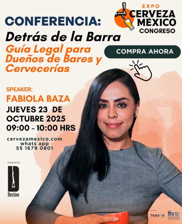 Cabe mencionar que Fabiola Baza es una de las ponentes en el Congreso de Expo Cerveza México, con el tema “Detrás de la Barra: Guía Legal para Dueños de Bares y Cervecerías”, que impartirá el jueves 23 de octubre de 9 a 10 horas, entradas disponibles AQUÍ.